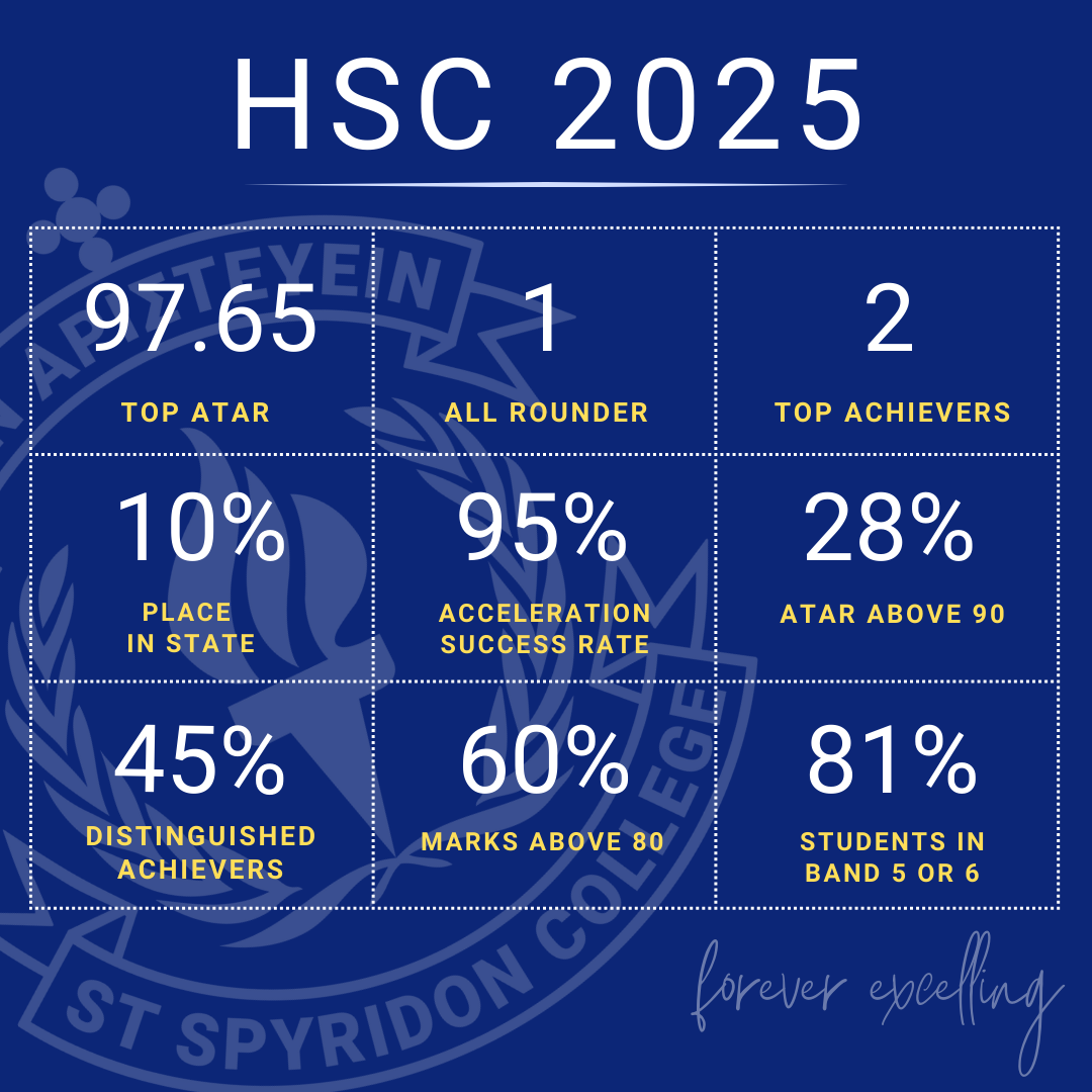 Congratulations to our 65 Year 12 students and 11 Accelerated Year 11 students, for their remarkable achievements in this year’s HSC.