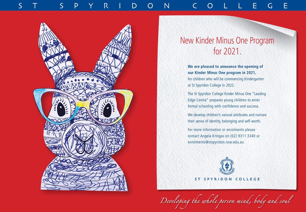 Should you require further information on any aspect of this program, please contact the Principal Junior School, Mrs A. Synesios on juniorschool@stspyridon.nsw.edu.au